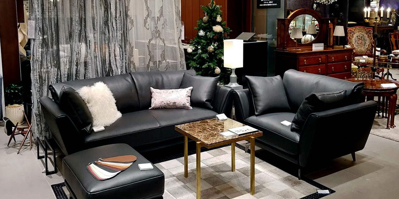 アイテムは2Pと1P、オットマンの3タイプで、レザーはサンプルの中からお選び頂けます。厚革はチャコールグレーとブラウンの2色です。他のお色は厚革ではございませんが、高い品質のレザーをご用意しております。※店頭展示品は3点共に厚革チャコールグレーです