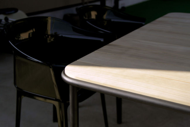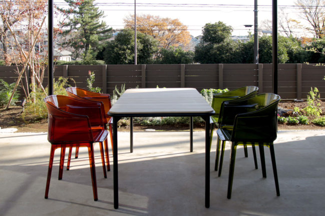 椅子はイタリアMAGIS社のグルチッチデザイン「CHAIR ONE」、同じくイタリアKartell社のブルレック兄弟デザイン「Papyrus」、タイのDEESAWAT社のディレクターチェアの別注ブラック仕様。これらの椅子もゼロファーストデザインでお取り扱いしております。