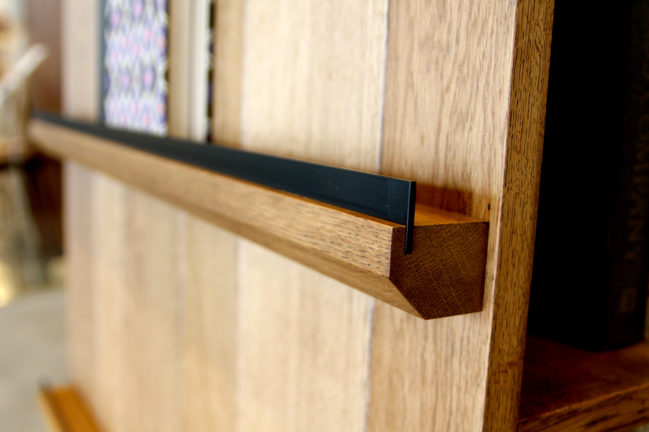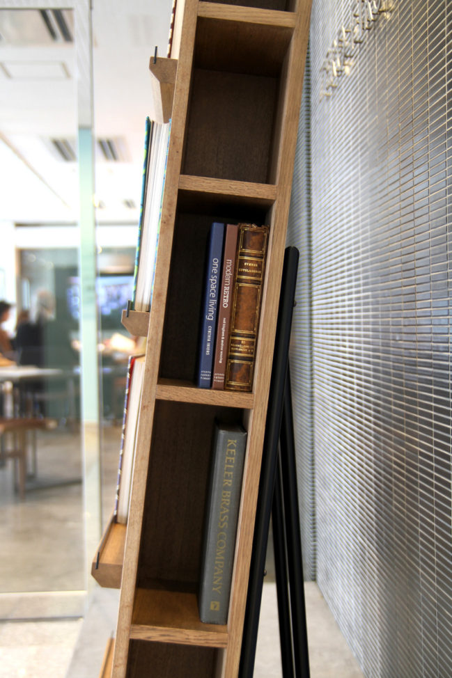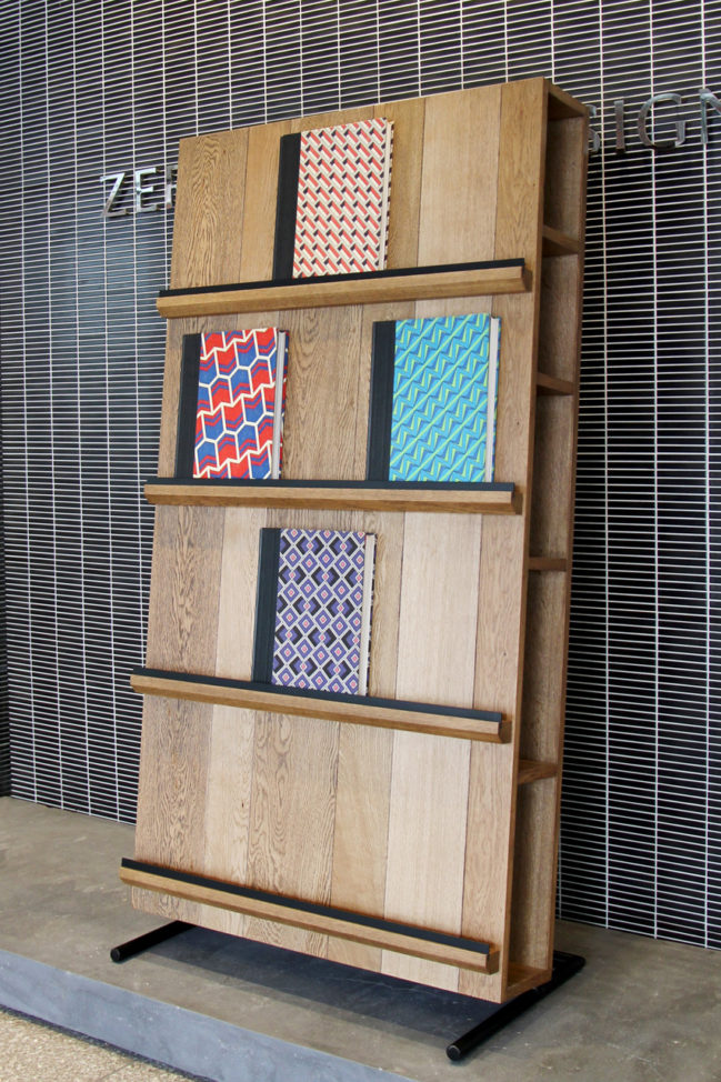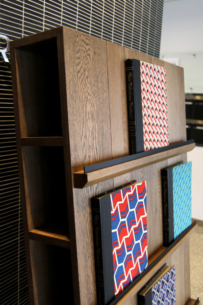 個人邸用にオリジナルでデザインしたマガジンラック。お客様からのご要望は、収納量だけを重視するのではなく、本を飾れるようなデザインという事でしたので、正面に本をディスプレイ出来るようにし、両サイドは本棚として使えるようにしています。