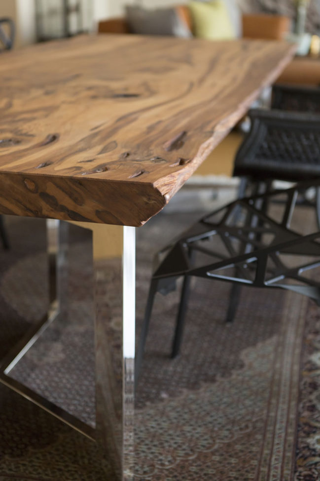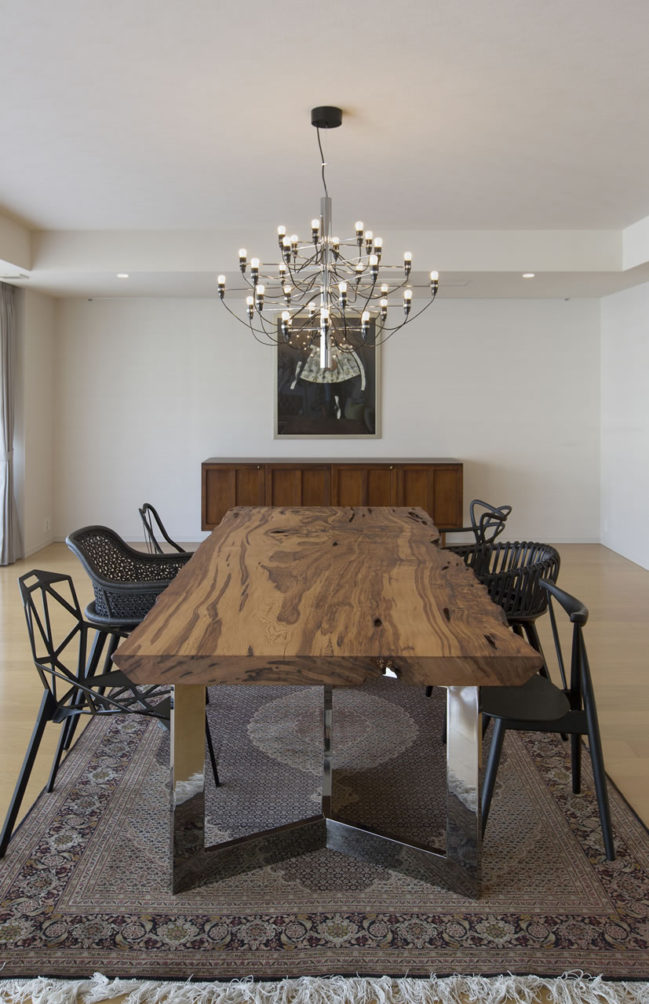 O邸 DINING TABLE Category: Product Design Date: 2014.12. 個人邸オーダー家具のデザイン。樹齢1,000年を超える屋久杉の一枚板を使ったダイニングテーブル。節や穴などは最小限の加工に停めて、極力自然の風合いを残した仕上げにしました。脚もオリジナルデザインのステンレスの鏡面仕上げ。 場所:東京 Category: Product Design2014年12月20日 Share This Project Share on FacebookShare on Facebook TweetShare on Twitter Pin itShare on Pinterest Project navigationPreviousPrevious project:O邸 SIDE TABLENextNext project:O邸 INTERIOR STYLING & FURNITURE DESIGN