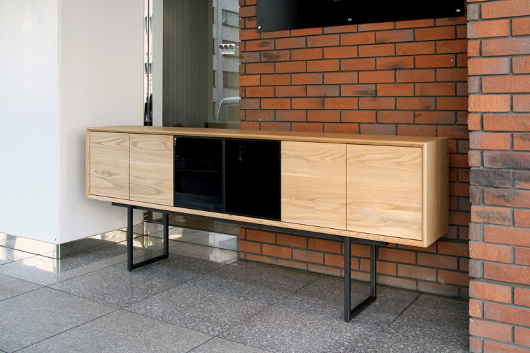 個人邸用に特注で製作したサイドボード。木部は北海道産のニレの無垢材(部分的に突板)を使用。